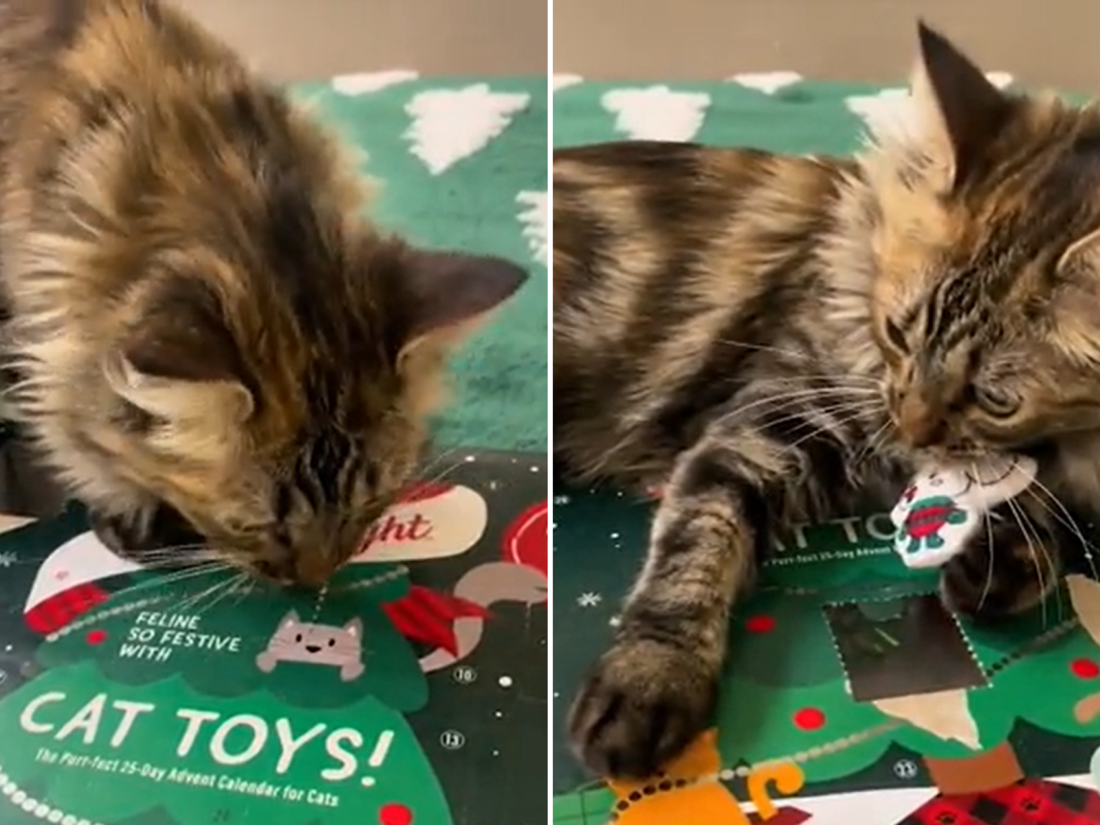 Clever Cat Gets Into the Festive Spirit by Opening Own Advent